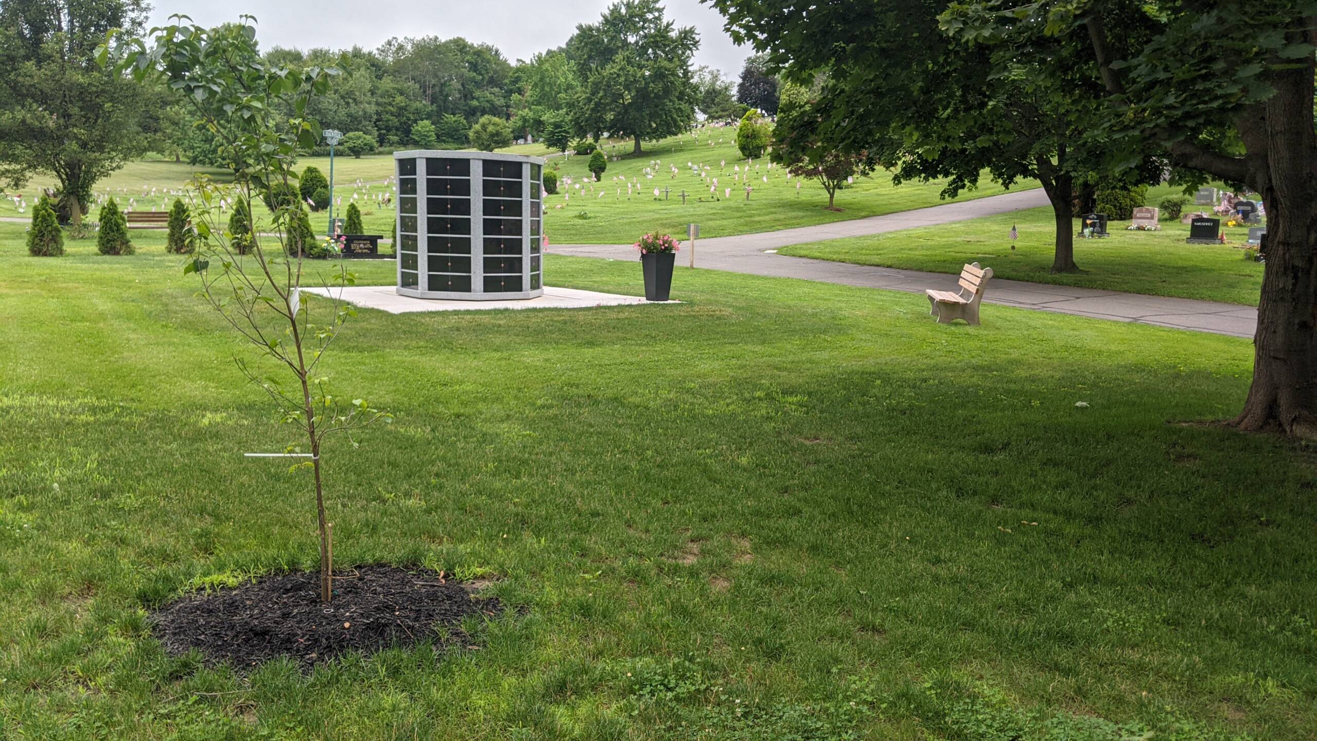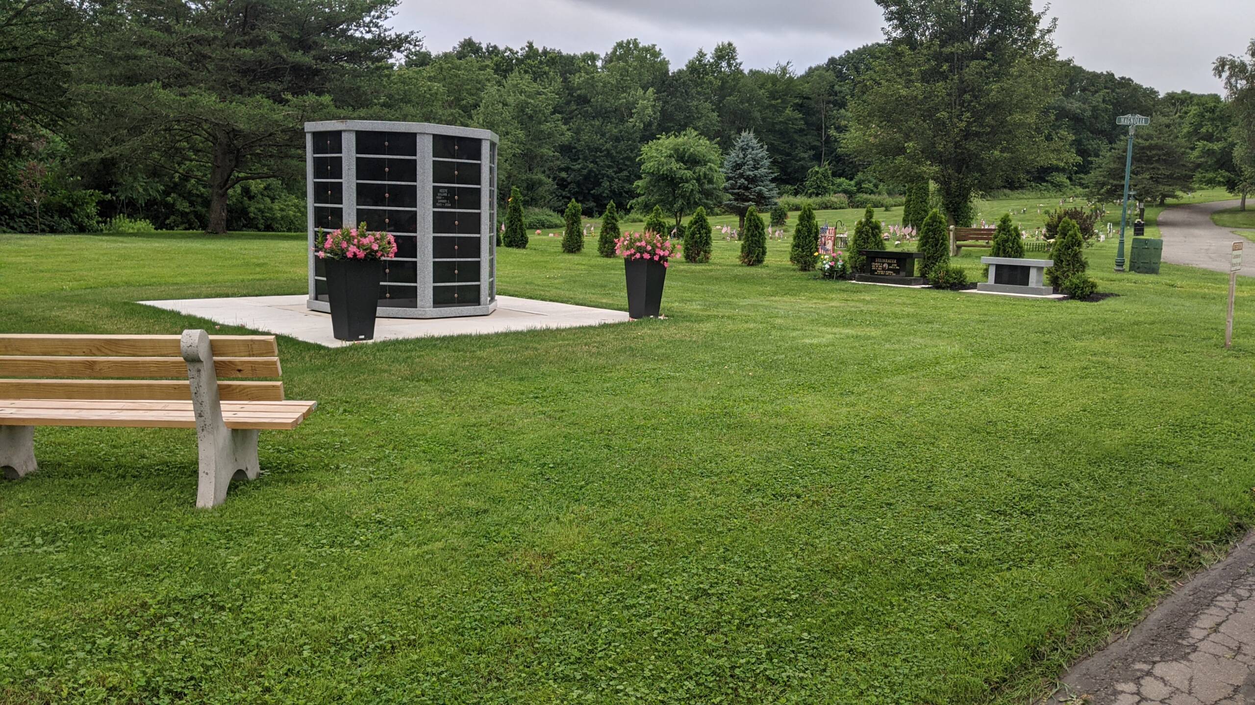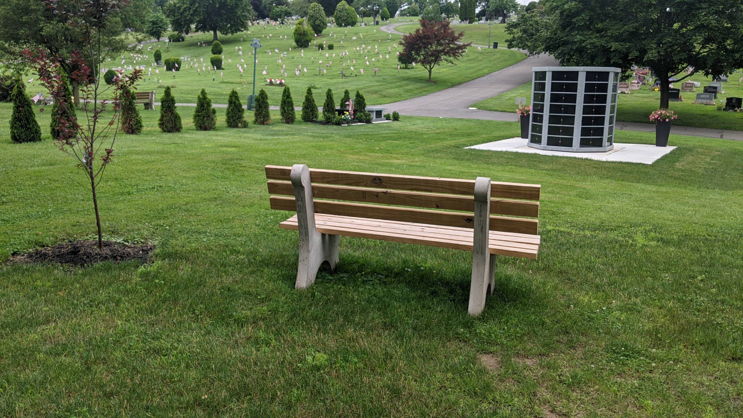 Maple Hill Cemetery is now selling niches in our free standing, outdoor Columbarium. We also offer Cremation Estates in a park-like setting, with a bench that holds two sets of cremains and availability for two sets of cremains in the ground.